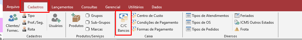 Após adicionar as informações do banco, na mesma tela clique em Parâmetros.