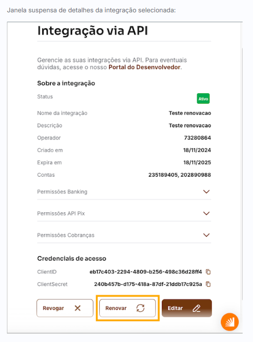Ao baixar a chave privada e o certificado, a integração estará pronta para utilização com estes novos arquivos, lembrando que deverão ser utilizados os mesmos clientId e clienteSecret.