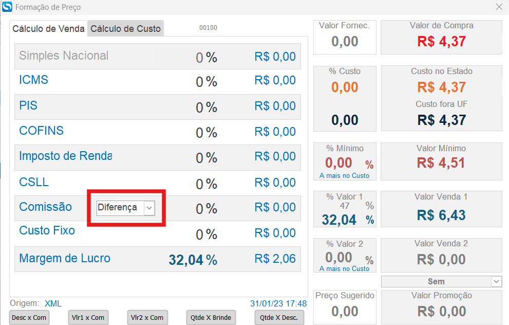 Segundo passo: para usar a comissão pela diferença é necessário ajustar no produto o campo da comissao para opção diferença.