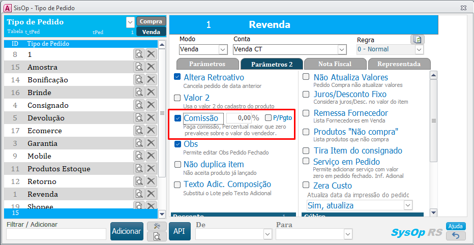 A comissão do produto prevalece sobre o % do tipo de pedido e vendedor