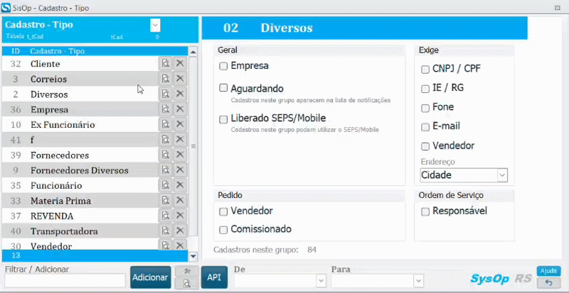 No grupo Vendedores, note que o checkbox Vendedor esta marcado, isso quer dizer que qualquer cadastro que estiver neste grupo de clientes aparecerá na tela do pedido, para ser escolhido no campo Vendedor, ou no próprio cadastro do cliente, você já poderá deixar definido.