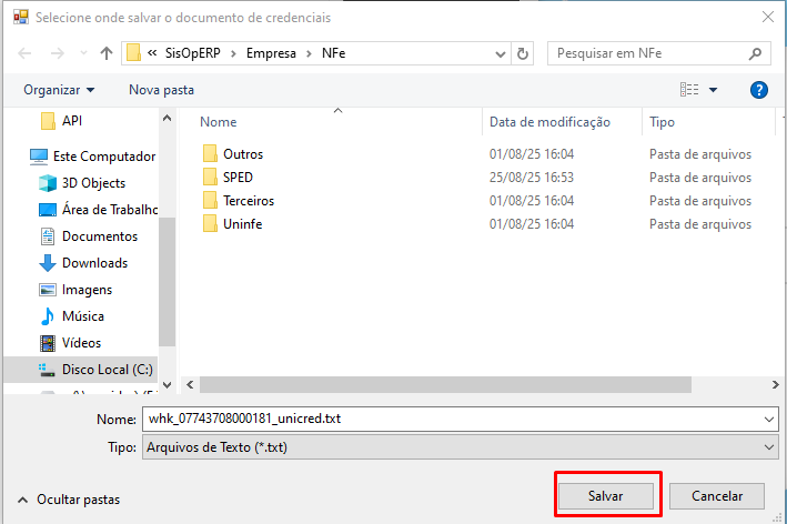 Após isso, salve as credenciais e pronto credenciais prontas para serem usadas.
