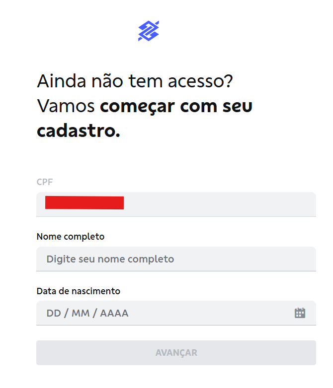Atenção: Os dados para criar a conta, devem ser da mesma pessoa titular da conta do banco do Brasil