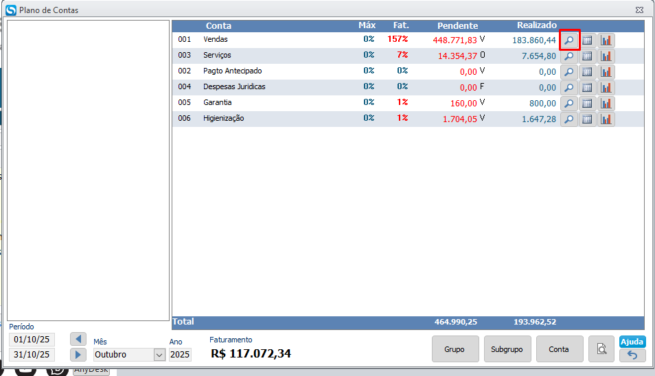 Terá a opção de filtrar por Conta, Subgrupo e Grupo
