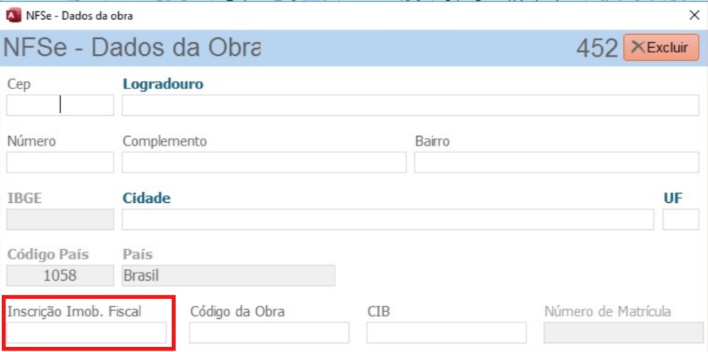 O campo Inscrição Imob. Fiscal, caso nao saiba, informe zero, pois caso não tenha informação nao passará a nota